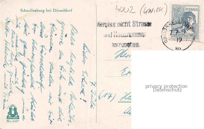 74100176 alte Postkarte Schnellenburg DuessELDORF Panorama postalisch gelaufen Erhaltung siehe scans [WerneD78] KatCode: 11110005111000