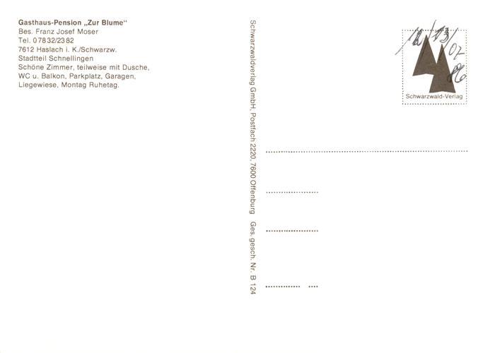 73883827 Schnellingen Gasthaus Pension zur Blume Panorama Kinzigtal Schwarzwald postalisch nicht gelaufen Erhaltung siehe scans [FriedD77] KatCode: 11110008317040