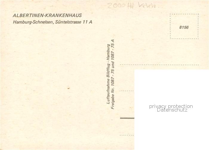 73762210 Schnelsen Hamburg Albertinen Krankenhaus postalisch nicht gelaufen Fliegeraufnahme Erhaltung siehe scans [FriedD77] KatCode: 11110002000000