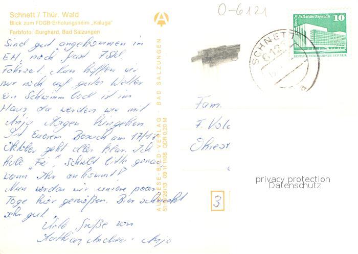 72941763 alte Postkarte Schnett FDGB Erholungsheim Kaluga postalisch gelaufen Erhaltung siehe scans [WerneD78] KatCode: 11110016069061