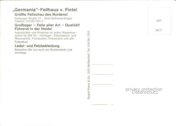 72318572 Schneverdingen Autopelz Grosslager Germania Fellhaus postalisch nicht gelaufen Erhaltung siehe scans KatCode: 11110003358019