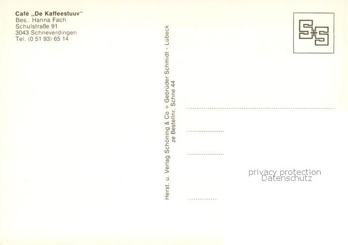 73784927 Schneverdingen Cafe De Kaffeestuuv postalisch nicht gelaufen Erhaltung siehe scans [FriedD77] KatCode: 11110003358019