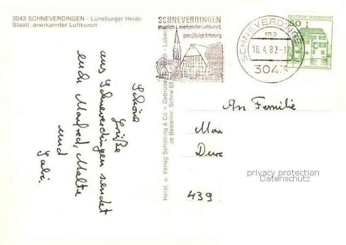73310244 alte Postkarte Schneverdingen Einkaufszentrum Kirche Quellenbad Verkehrsamt Rathaus Hallenbad Heimathaus Suedpark Luftkurort Lueneburger Heide postalisch gelaufen Erhaltung siehe scans [FriedD77] KatCode: 11110003358019