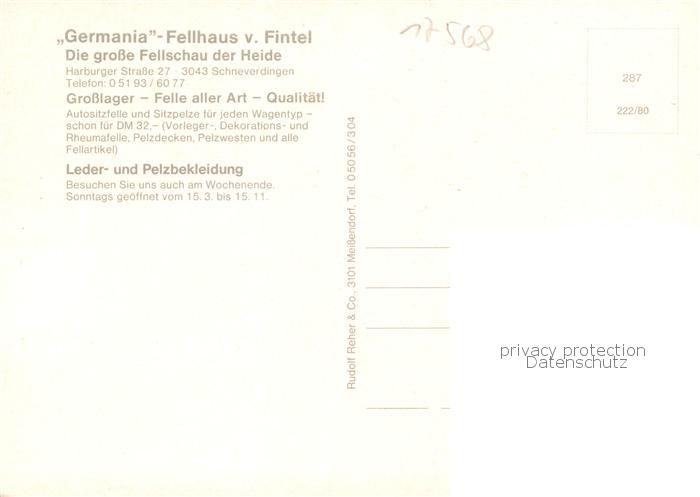 73797106 Schneverdingen Germania Fellhaus v Fintel Autopelz Grosslager postalisch nicht gelaufen Erhaltung siehe scans [WerneD78] KatCode: 11110003358019