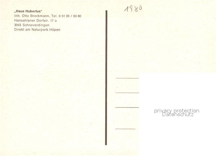 72987945 Schneverdingen Haus Hubertus am Naturpark Hoepen postalisch nicht gelaufen Erhaltung siehe scans [FriedD77] KatCode: 11110003358019