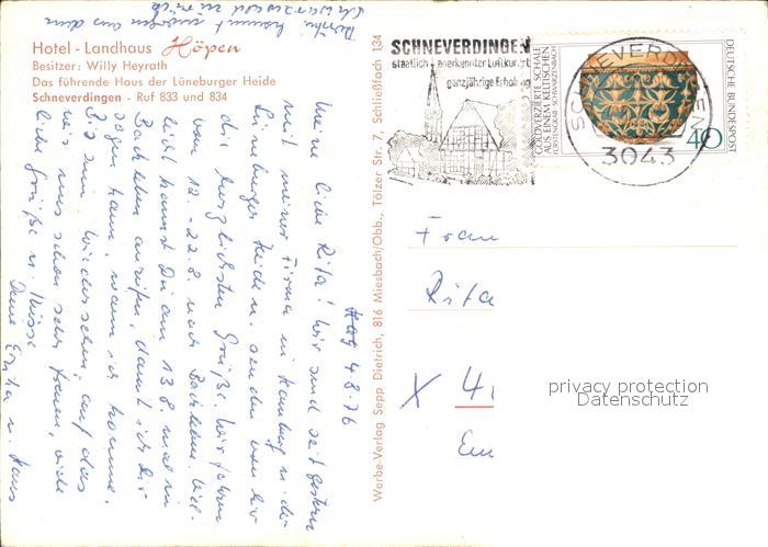 72426973 alte Postkarte Schneverdingen Hotel Landhaus Foyer Lueneburger Heide postalisch gelaufen Erhaltung siehe scans KatCode: 11110003358019