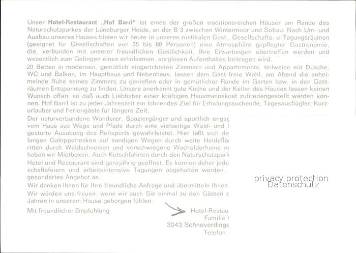 72551264 Schneverdingen Hotel Restaurant Hof Barrl postalisch nicht gelaufen Erhaltung siehe scans [LiesaD40] KatCode: 11110003358019