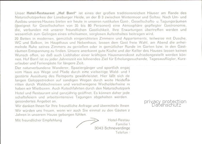 72518964 Schneverdingen Hotel Restaurant Hof Barrl postalisch nicht gelaufen Erhaltung siehe scans KatCode: 11110003358019