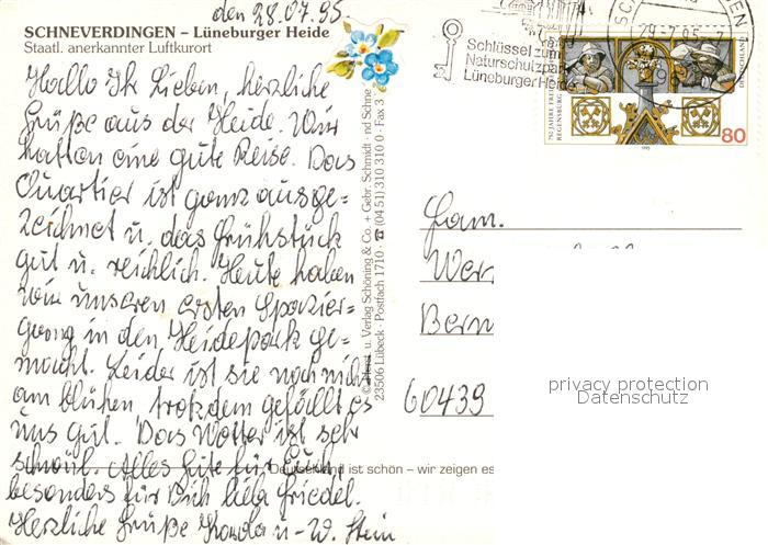73276840 alte Postkarte Schneverdingen postalisch gelaufen Erhaltung siehe scans [LiesaD40] KatCode: 11110003358019
