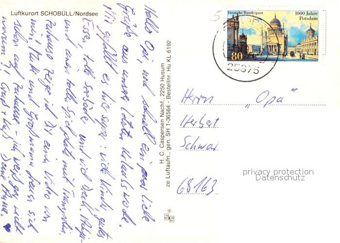 73130421 alte Postkarte Schobuell Husum Fliegeraufnahme postalisch gelaufen Erhaltung siehe scans [NatalD47] KatCode: 11110001054115