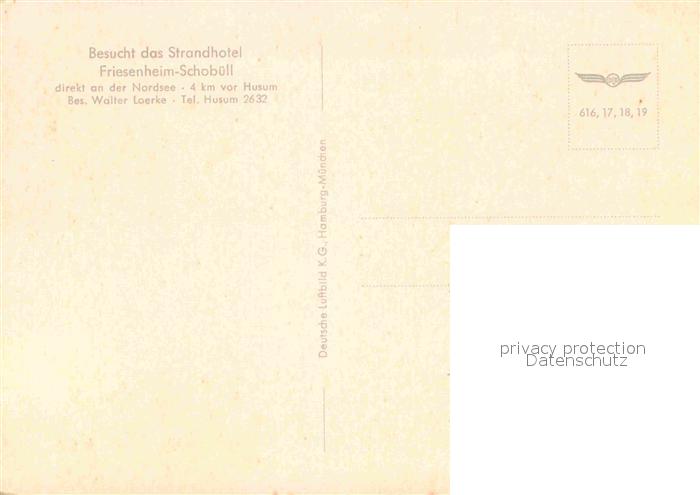 72641436 Schobuell Husum Strandhotel Friesenheim Kirche Waldpartie Landschaftspanorama postalisch nicht gelaufen Erhaltung siehe scans [FriedD77] KatCode: 11110001054115