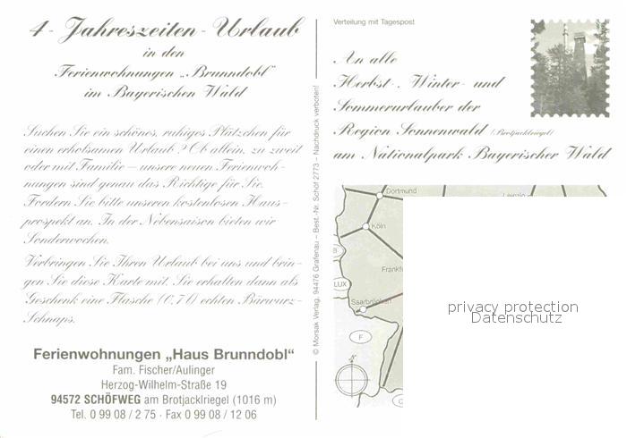 72716538 Schoefweg Ferienwohnungen Brunndobl im Bayerischen Wald postalisch nicht gelaufen Werbekarte (keine Postkarte) Erhaltung siehe scans [LiesaD40] KatCode: 11110009272145
