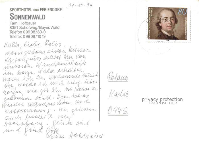 74039766 alte Postkarte Schoefweg Sporthotel Feriendorf Sonnenwald postalisch gelaufen Fliegeraufnahme Erhaltung siehe scans [FriedD77] KatCode: 11110009272145