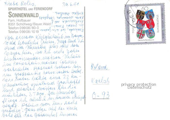 74043995 alte Postkarte Schoefweg Sporthotel und Feriendorf Sonnenwald Fliegeraufnahme postalisch gelaufen Erhaltung siehe scans [WerneD78] KatCode: 11110009272145