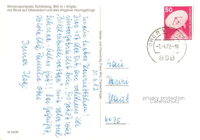73843556 alte Postkarte Schoellang mit Blick auf Oberstdorf und das Allgaeuer Hochgebirge postalisch gelaufen Erhaltung siehe scans [FriedD77] KatCode: 11110009780133