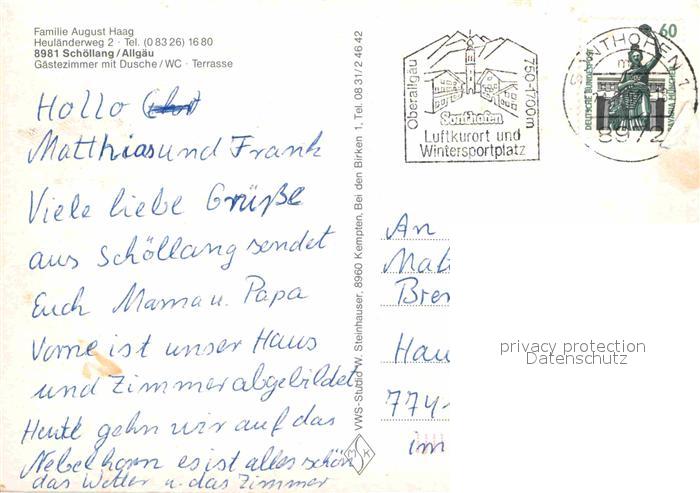 72709423 alte Postkarte Schoellang Panorama Allgaeuer Alpen Pension Haus Haag postalisch gelaufen Erhaltung siehe scans [FriedD77] KatCode: 11110009780133