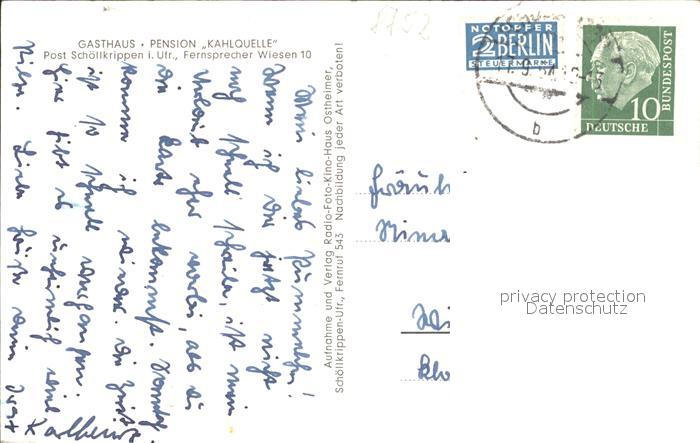 31721779 alte Postkarte Schoellkrippen Gasthaus Pension Kahlquelle postalisch gelaufen Erhaltung siehe scans KatCode: 11110009671152