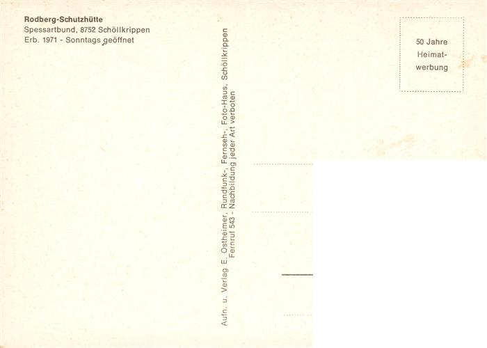 73946660 Schoellkrippen Rodberg Schutzhuette Landschaftspanorama Spessartwald postalisch nicht gelaufen Erhaltung siehe scans [FriedD77] KatCode: 11110009671152