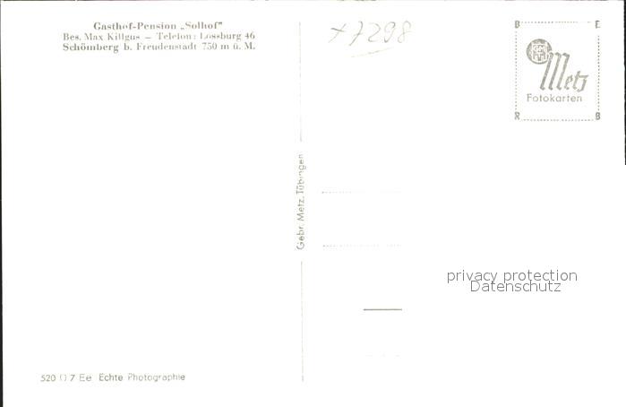 41760145 Schoemberg Freudenstadt Gasthaus Pension Solhof postalisch nicht gelaufen Erhaltung siehe scans KatCode: 11110008237073