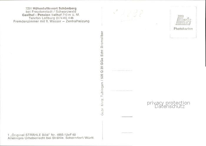 41760736 Schoemberg Freudenstadt Gasthaus Pension Solhof Kegelbahn postalisch nicht gelaufen Erhaltung siehe scans KatCode: 11110008237073