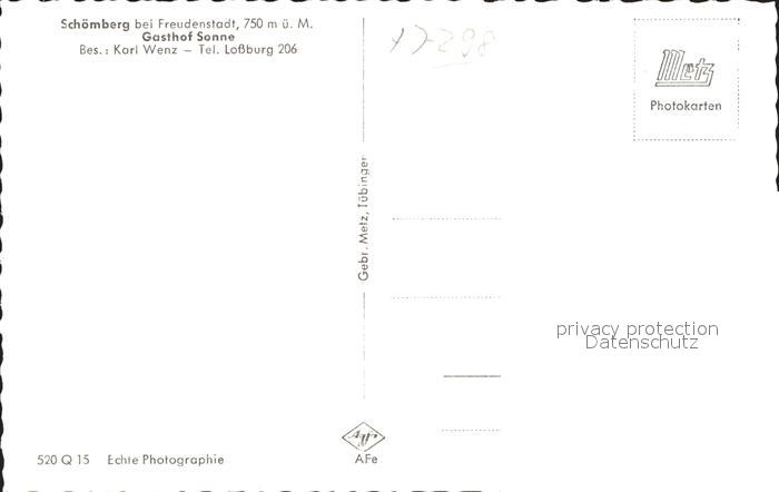 41760490 Schoemberg Freudenstadt Gasthof Sonne postalisch nicht gelaufen Erhaltung siehe scans KatCode: 11110008237073