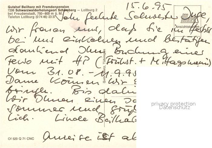 73636789 Schoemberg Freudenstadt Gutshof Beilharz Pension Schwarzwald postalisch nicht gelaufen Erhaltung siehe scans [FriedD77] KatCode: 11110008237073