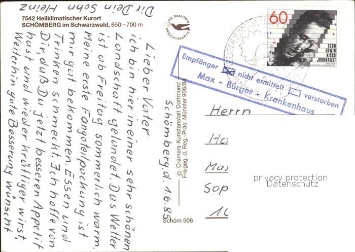 72481917 alte Postkarte Schoemberg Freudenstadt Kurort Luftbild postalisch gelaufen Erhaltung siehe scans KatCode: 11110008237073
