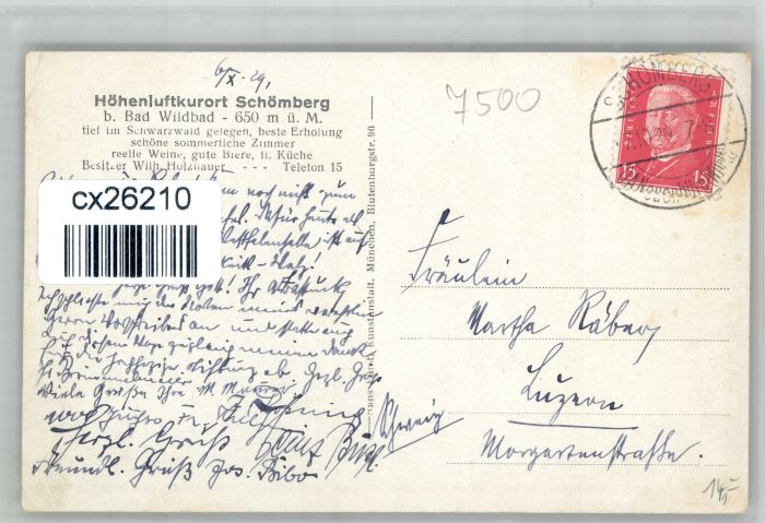 30838292 alte Postkarte Schoemberg Schwarzwald bei Bad Wildbad Gasthof Pension Lamm postalisch gelaufen KatCode: 11110008235065