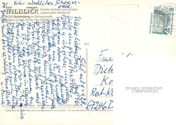 73858758 alte Postkarte Schoemberg Schwarzwald Cafe Talblick Hotel garni postalisch gelaufen Erhaltung siehe scans [WerneD78] KatCode: 11110008235065