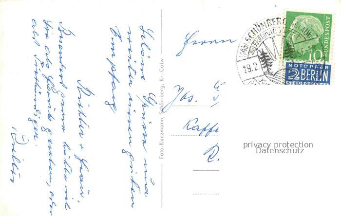 74064019 alte Postkarte Schoemberg Schwarzwald Calw BW Hotel Pension Kirchturm postalisch gelaufen Erhaltung siehe scans [FriedD77] KatCode: 11110008235065