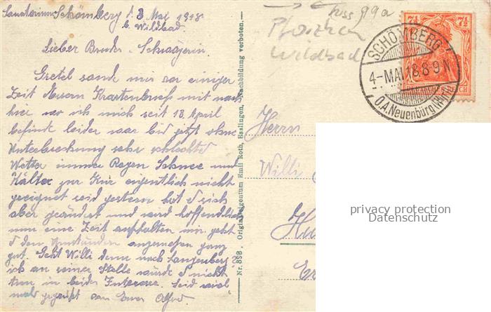 74062909 alte Postkarte Schoemberg Schwarzwald Calw BW Panorama Sanatorium Schwarzwaldheim postalisch gelaufen Erhaltung siehe scans [FriedD77] KatCode: 11110008235065