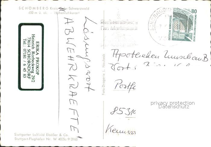 72131652 alte Postkarte Schoemberg Schwarzwald Fliegeraufnahme postalisch gelaufen Erhaltung siehe scans KatCode: 11110008235065