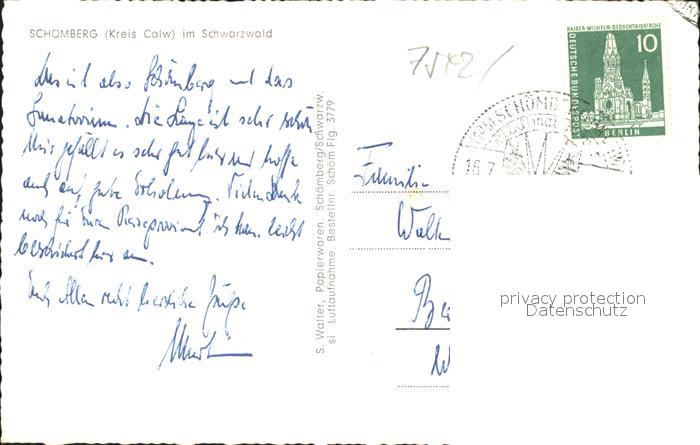 31728691 alte Postkarte Schoemberg Schwarzwald Fliegeraufnahme postalisch gelaufen Erhaltung siehe scans KatCode: 11110008235065
