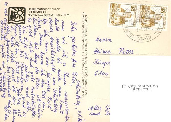 73192665 alte Postkarte Schoemberg Schwarzwald Fliegeraufnahme postalisch gelaufen Erhaltung siehe scans [NatalD47] KatCode: 11110008235065
