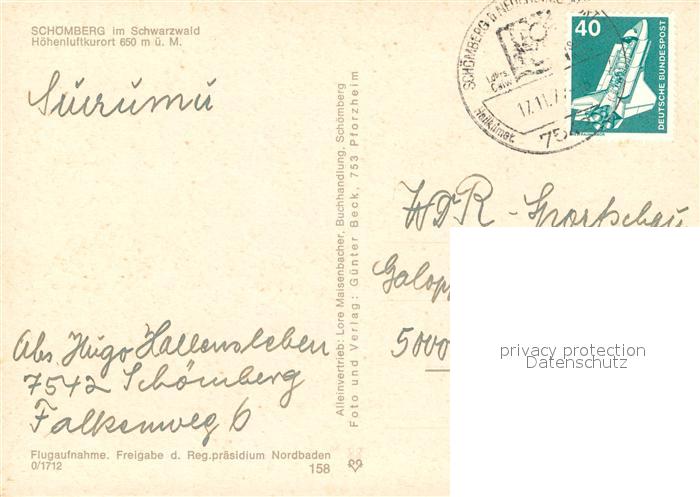 73723729 alte Postkarte Schoemberg Schwarzwald Fliegeraufnahme postalisch gelaufen Erhaltung siehe scans [WerneD78] KatCode: 11110008235065