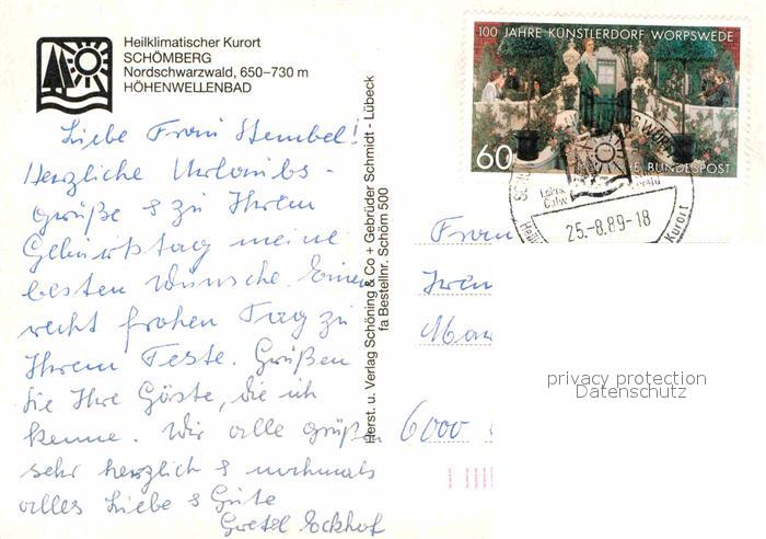 72842622 alte Postkarte Schoemberg Schwarzwald Hoehenwellenbad postalisch gelaufen Erhaltung siehe scans [NatalD47] KatCode: 11110008235065
