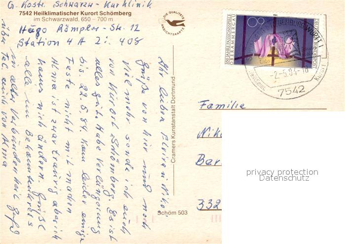 73107155 alte Postkarte Schoemberg Schwarzwald Hoehenwellenbad postalisch gelaufen Erhaltung siehe scans [KathaD81] KatCode: 11110008235065
