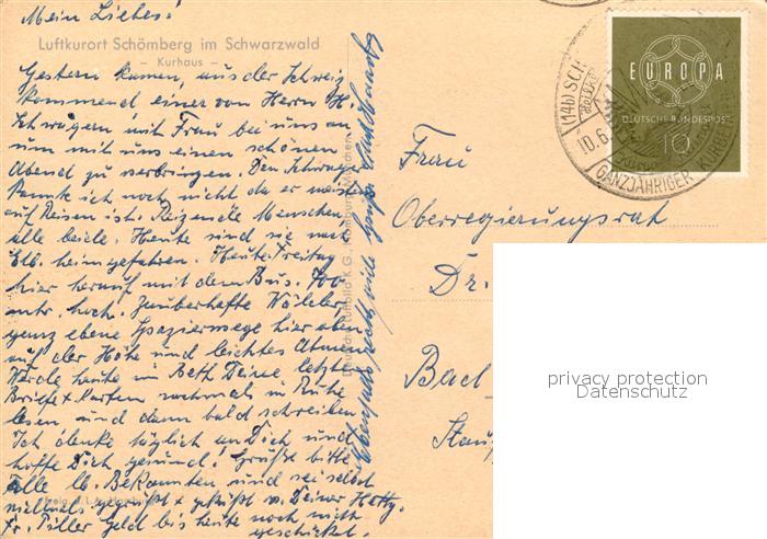 73072040 alte Postkarte Schoemberg Schwarzwald Kurhaus postalisch gelaufen Erhaltung siehe scans [NatalD47] KatCode: 11110008235065