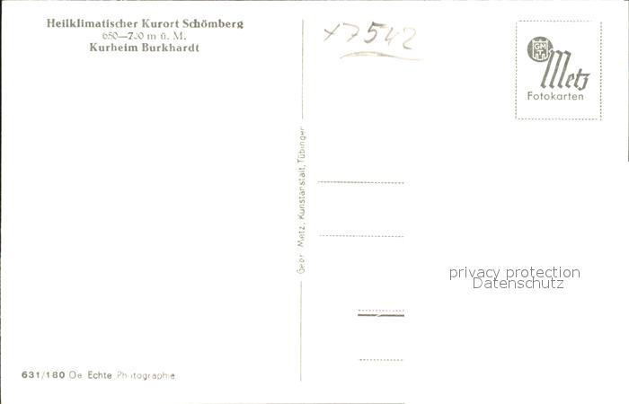 41815529 Schoemberg Schwarzwald Kurheim Burkhardt Heilklimatischer Kurort postalisch nicht gelaufen Erhaltung siehe scans KatCode: 11110008235065