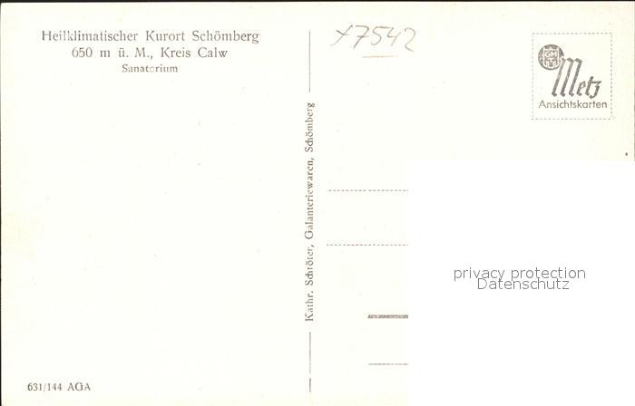 41775260 Schoemberg Schwarzwald Sanatorium postalisch nicht gelaufen Erhaltung siehe scans KatCode: 11110008235065