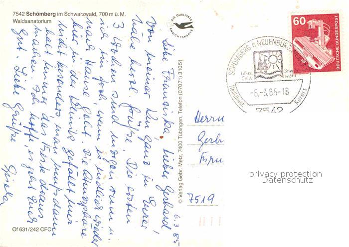 72677557 alte Postkarte Schoemberg Schwarzwald Waldsanatorium postalisch gelaufen Erhaltung siehe scans [FriedD77] KatCode: 11110008235065