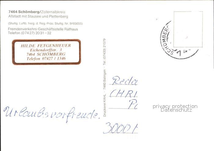 72465654 alte Postkarte Schoemberg Zollernalbkreis Altstadt mit Stausee und Plettenberg Fliegeraufnahme postalisch gelaufen Erhaltung siehe scans KatCode: 11110008417002