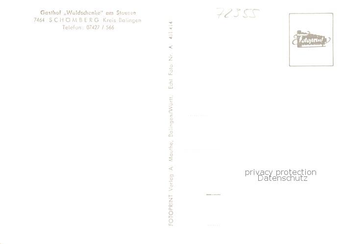 73855382 Schoemberg Zollernalbkreis Gasthof Waldschenke am Stausee postalisch nicht gelaufen Erhaltung siehe scans [FriedD77] KatCode: 11110008417002