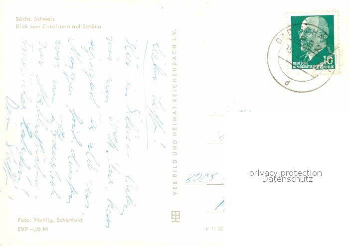 72643901 alte Postkarte Schoena Bad Schandau Panorama Blick vom Zirkelstein postalisch gelaufen Erhaltung siehe scans [FriedD77] KatCode: 11110014287020