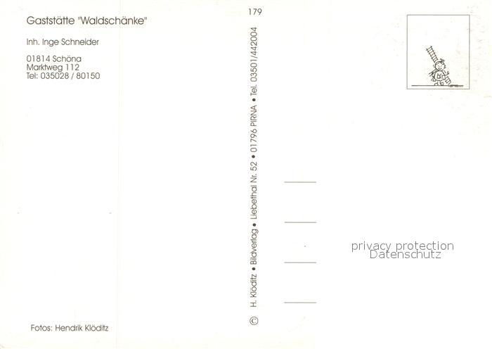 73704834 Schoena Elbe Gaststaette Waldschaenke Gastraum Terrasse postalisch nicht gelaufen Erhaltung siehe scans [FriedD77] KatCode: 11110014287330