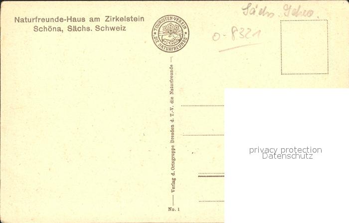 42203992 Schoena Elbe Naturfreundehaus am Zirkelstein postalisch nicht gelaufen Erhaltung siehe scans KatCode: 11110014287330