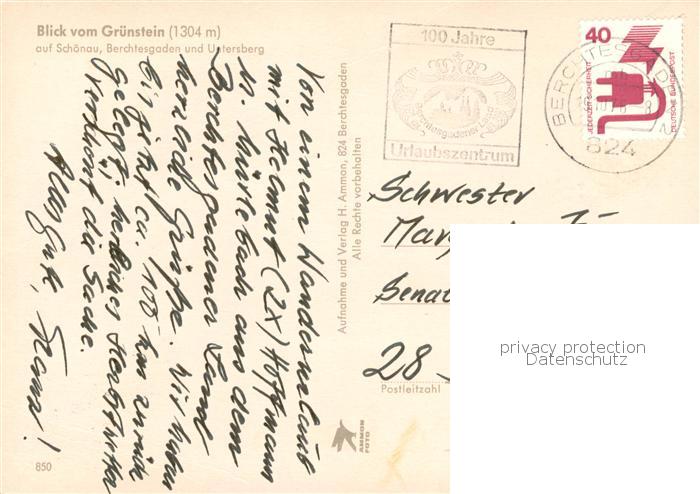 73767165 alte Postkarte Schoenau Berchtesgaden Blick vom Gruenstein mit Untersberg postalisch gelaufen Erhaltung siehe scans [FriedD77] KatCode: 11110009172116