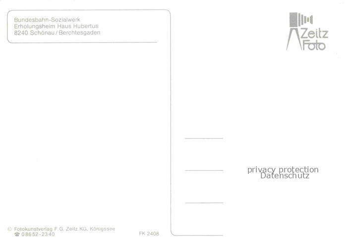 74042939 Schoenau Berchtesgaden Bundesbahn Sozialwerk Erholungsheim Haus Hubertus postalisch nicht gelaufen Erhaltung siehe scans [WerneD78] KatCode: 11110009172116