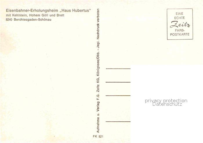 72893305 Schoenau Berchtesgaden Eisenbahner Erholungsheim Haus Hubertus postalisch nicht gelaufen Erhaltung siehe scans [AndreD76] KatCode: 11110009172116