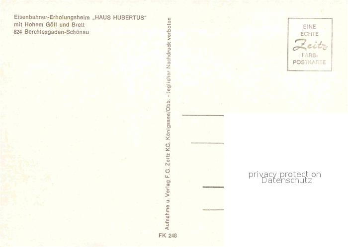 72893234 Schoenau Berchtesgaden Eisenbahner Erholungsheim Haus Hubertus postalisch nicht gelaufen Erhaltung siehe scans [AndreD76] KatCode: 11110009172116